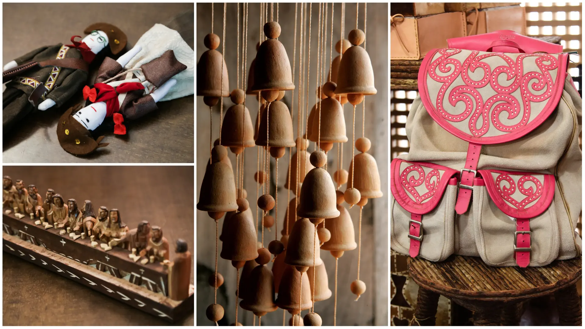 O que pode encontrar: bonecos em madeira, chaveiro e quadros
