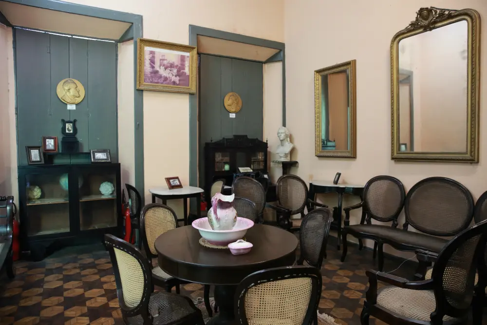 Salão dos Espelhos: resguarda boa parte dos objetos pessoais de Juvenal Galeno, como livros, bustos de pensadores admirados pelo escritor, além de uma fotografia que o apresenta aos 92 anos de idade rodeados por membros da família