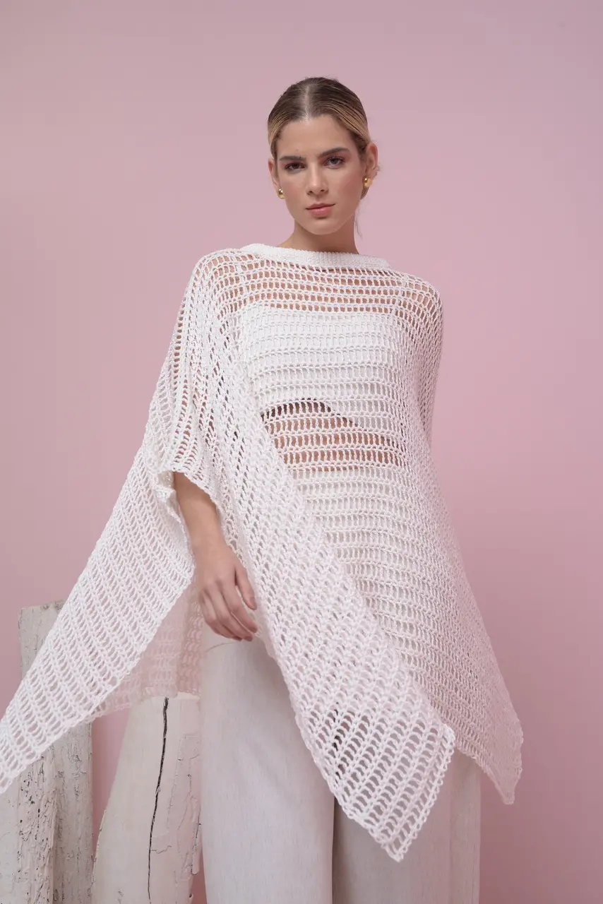 "Eu tinha a vontade de ter algo meu, mas a marca teria que transcrever o que sou, meu estilo muito minimalista e simplificado. Eu queria criar algo inédito, com meu estilo, minha assinatura, elegante e atemporal e foi aí que cheguei no crochê, uma artesania que tive muito contato na infância, quando passava férias em Jijoca”, conta Gabriela.