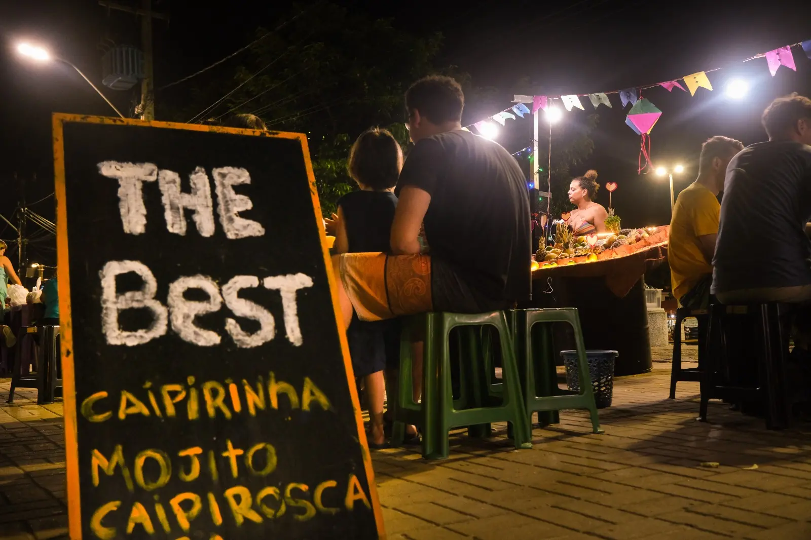 É noite, e o som das bandeirinhas de São João no céu se mistura com o ruído manso vindo do cais. Cumbuco sedia risadas, conversas, gente chegando para ocupar espaços. Quando for, observe: o pôr do sol à beira-mar anuncia experiências em boca, olhos e cheiros. Corpo todo preparado para se alimentar de tudo. O mundo cabe numa rua.