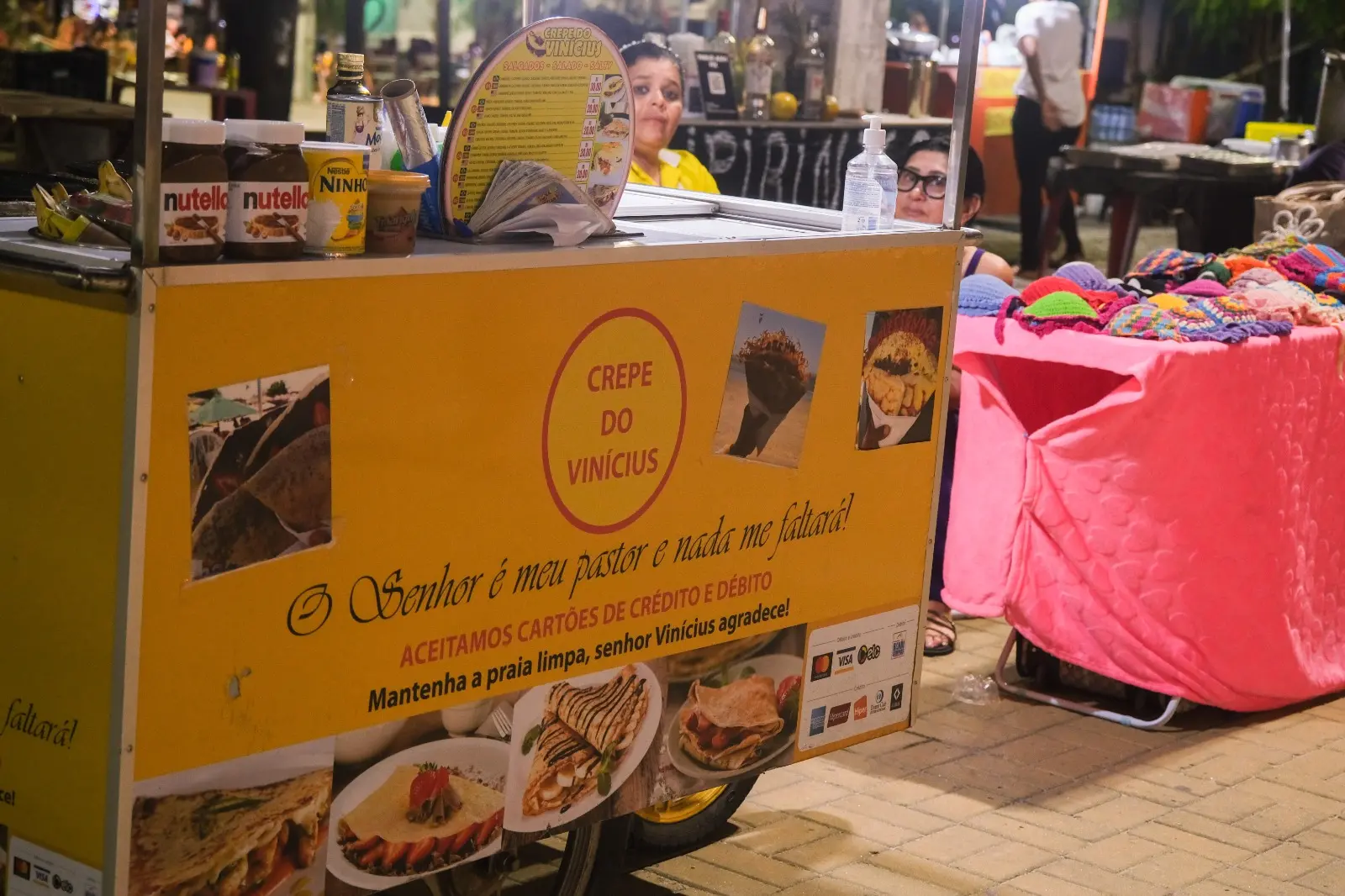 E assim a praia consolida não apenas um, mas vários paladares numa praça só. Churrasquinhos, docerias, burguerias, isopores com comida coreana, cafés, barraquinhas de crepe e de venda de castanha dividem espaço com uma população disposta: é sempre tempo de sair do mergulho do mar para embarcar em outro. Mergulho de sensações.