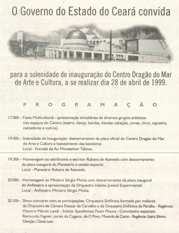 “Foram gastos cinco anos de trabalho para plantar no coração histórico de Fortaleza, na Praia de Iracema, a promessa de um projeto cultural capaz de atender às mudanças e reivindicações, em fim-de-século, da tecnocultura – em que arte e técnica tentaram andar de mãos dadas por vias múltiplas”, continuava o texto.