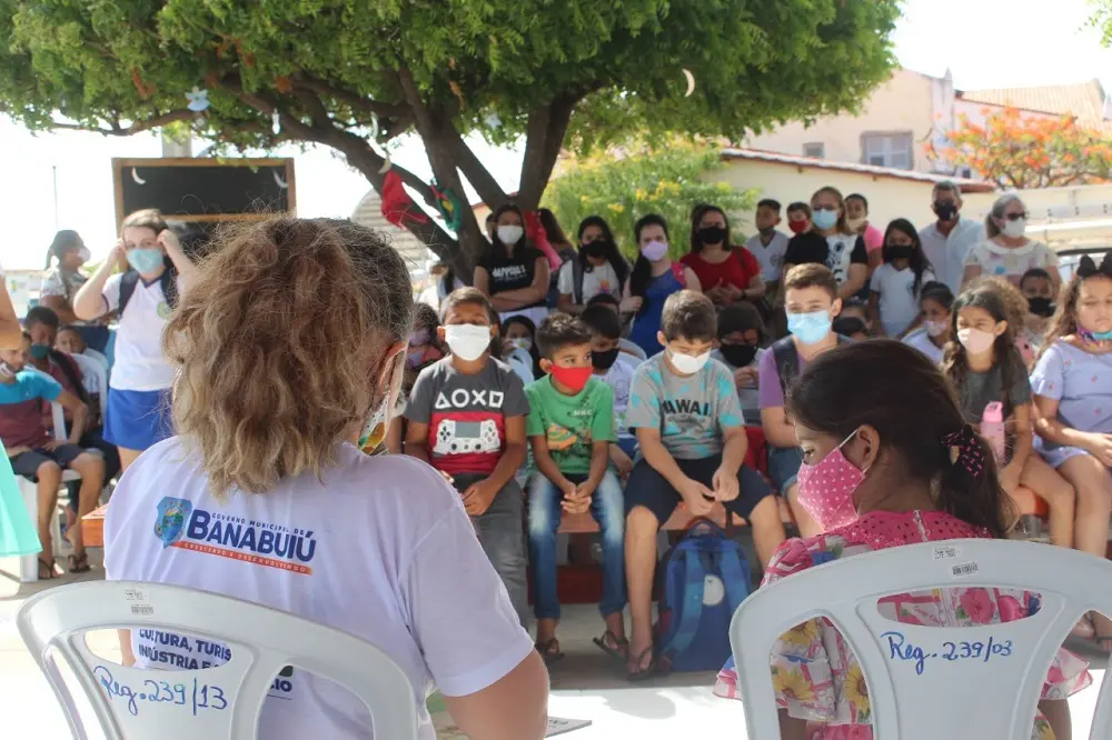 Mais de 170 quilômetros separam Redenção do município de Banabuiú, interior do Estado. O cotidiano de quem promove a leitura, contudo, é o mesmo. A funcionária pública Marília Batista Sá é idealizadora do projeto “Conte de lá que eu conto de cá”. Com nome inspirado em um poema de Patativa do Assaré (1909-2022), a ação acontece desde 2016 e envolve leitura e contação de histórias para crianças do segundo ano do ensino fundamental.