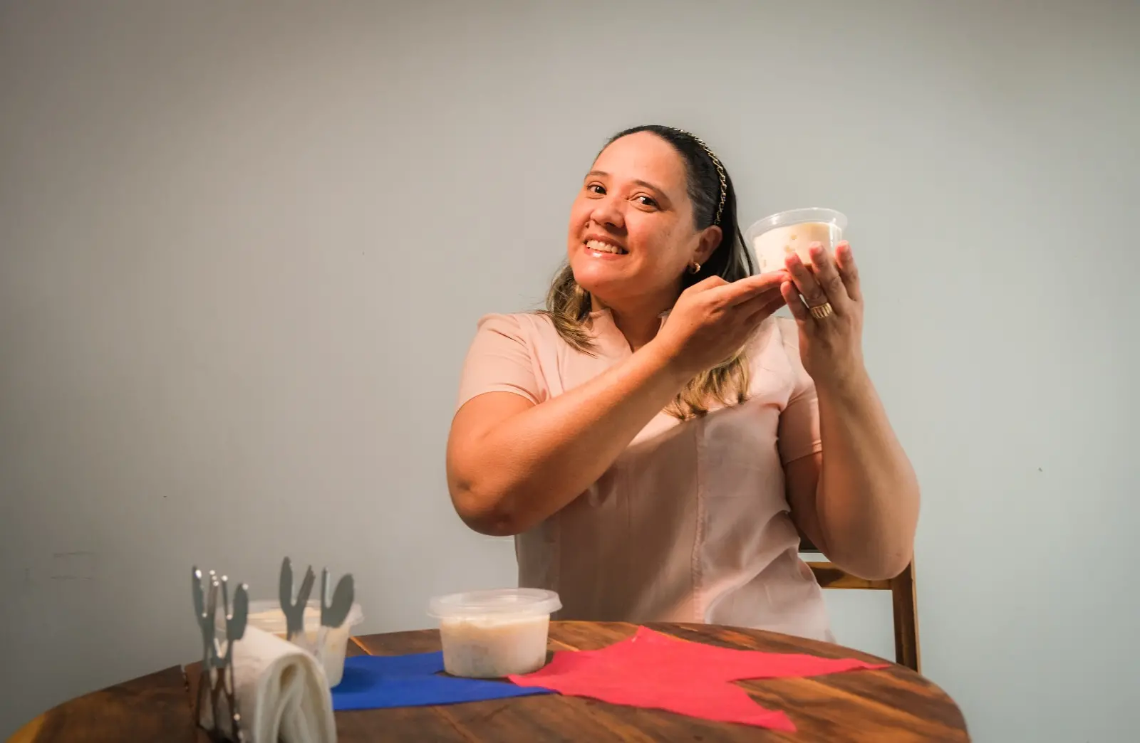 “Faço várias comidas da nossa região porque foi a forma como fui criada, eu uso uma receita da minha avó que fazia pra gente comer quando criança. Quando comecei a trabalhar com comida, me veio a ideia de fazer mungunzá, que eu gosto muito, e no meu interior (Pacoti), só faziam mais o salgado”.