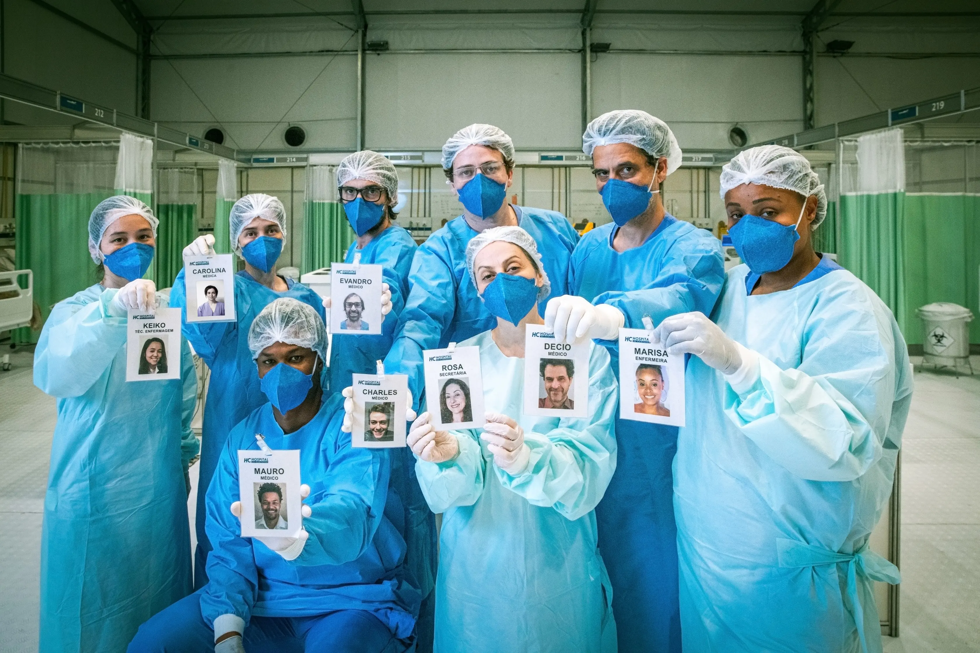 Pensando nisso, alguns elementos foram incorporados para humanizar mais a figura dos profissionais. "Na série, começamos a usar um crachá com as fotos com nossa imagem mais acolhedora para nos apresentar aos pacientes fictícios. Tivemos de repensar esses elementos que desumanizam, foi um grande aprendizado”, aponta Bruno Garcia, que dá vida ao doutor Décio na série.
