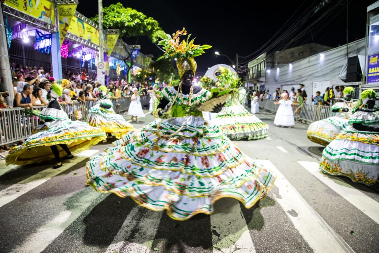 Lançado em dezembro do ano passado, o edital de pesquisadores foi uma iniciativa inédita da Secultfor para o período. “No ciclo junino a gente já tinha feito. Esse é para o ciclo carnavalesco”, inicia Graça Martins, gerente da Célula de Patrimônio Imaterial da Secultfor, em entrevista ao Verso durante o 2º dia de desfiles de maracatus na av. Domingos Olímpio.