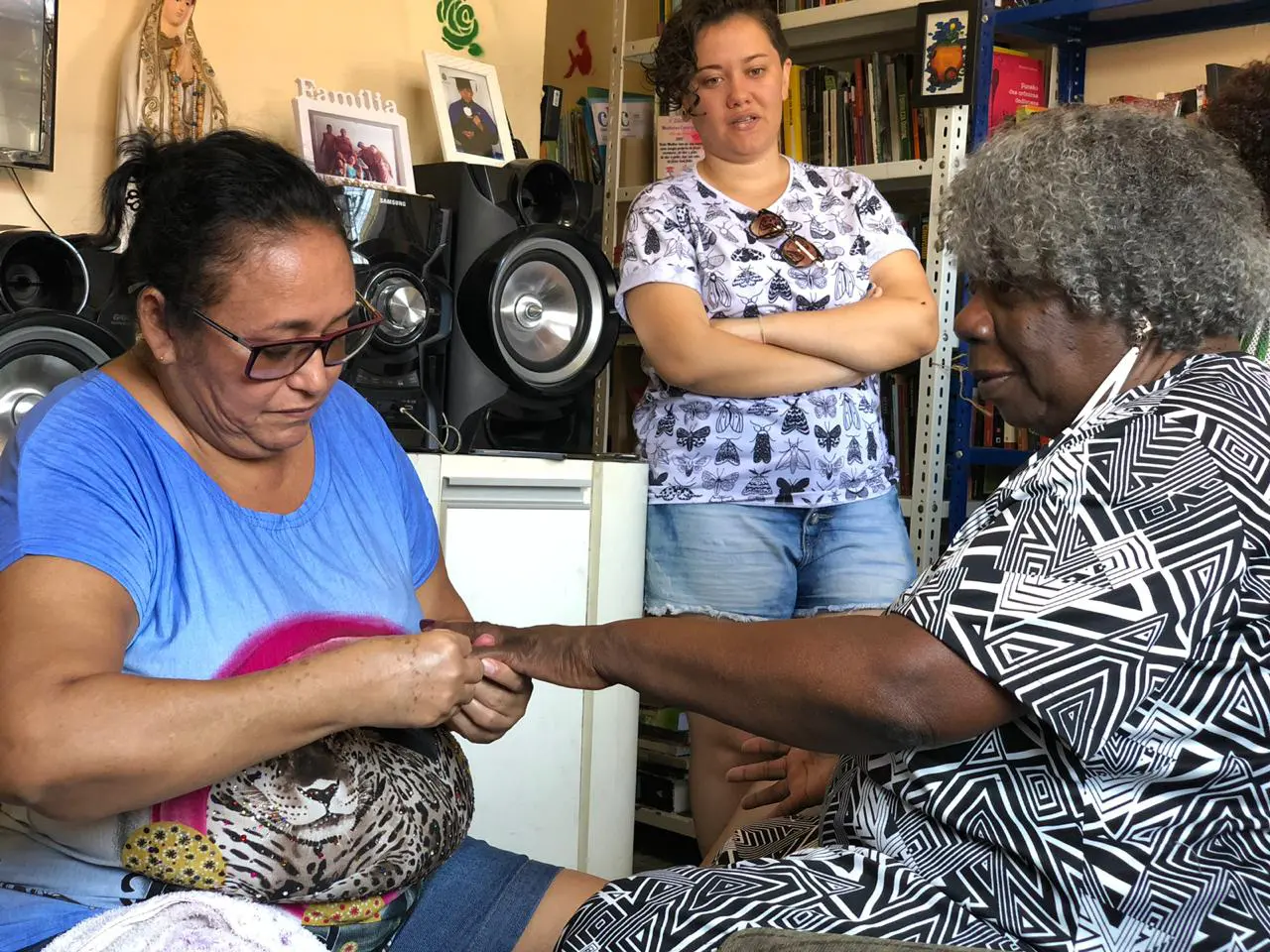 A intimidade foi tamanha que ela fez até as unhas de Conceição, no espaço em que mantém livros para que as pessoas levem. Mais tarde, durante entrevista, a escritora relembrou: “Foi um encontro em que eu falei, ‘estou entre os meus iguais’. A atitude de orientar crianças para a leitura é muito boa. Se as pessoas quiserem fazer algo, devem partir mesmo de onde elas vivem”.