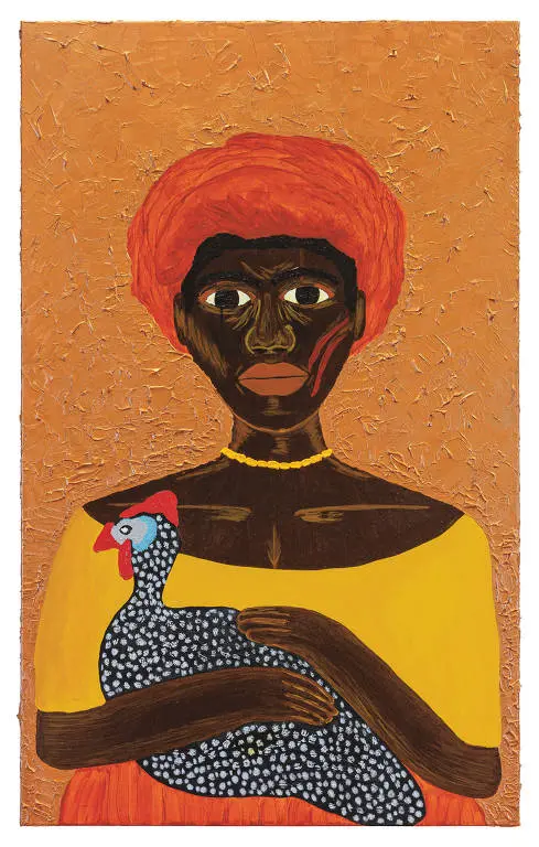 Ela conta que sonhou com Marta logo depois de ler sua história e que a rainha se apresentou como "quem chega pedindo licença". No retrato, Marta usa um turbante vermelho e segura uma galinha de Angola –em referência "ao elo existente entre os mundos terreno e espiritual" na cultura iorubá, segundo a artista.