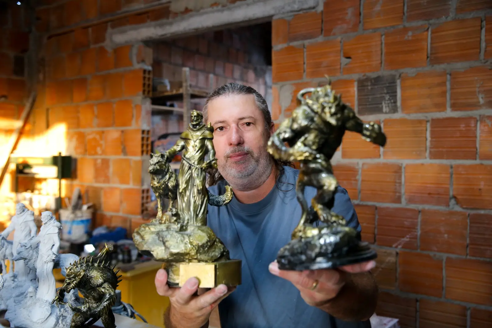 Escultor Mario Portela encontrou um novo caminho profissional por meio da arte, após descobrir problema de saúde, e hoje assina troféus de diversas premiações