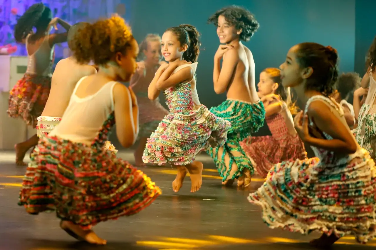 É essa trajetória que 60 bailarinos em cena narram no espetáculo “Histórias de Acordar o Amanhã” um trabalho coletivo que conta com a dedicação de alunos de diversas linguagens artísticas, como é o caso do grupo de percussão da Vidança que também participa da trilha sonora. Já o figurino e cenário, foram confeccionados pelas mãos zelosas da turma de Corte e Costura e Arte Viso-Manuais, um trabalho manual que também é parte do processo criativo do “Histórias” pois os panôs bordados, que compõem o segundo cenário do espetáculo, foram construídos em cima dos desenhos dos alunos, uma representatividade de suas realidades.