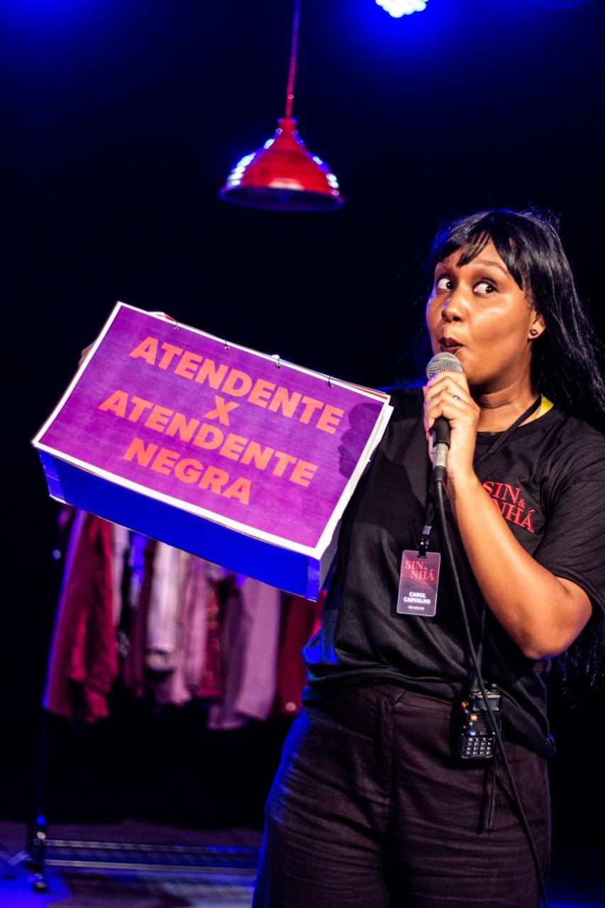 O projeto cênico "Sin&Nhá, entre o palco, a vida real e os bastidores” existe nos pensamentos da atriz e pesquisadora Carol Carvalho desde 2016, quando ela deixou sua cidade natal, Salvador, para tentar a vida artística em São Paulo. Mas foi só quatro anos depois, em março de 2020, que o espetáculo ganhou os palcos, denunciando as violências simbólicas e estruturais vivenciadas pela mulher negra no mercado de trabalho.