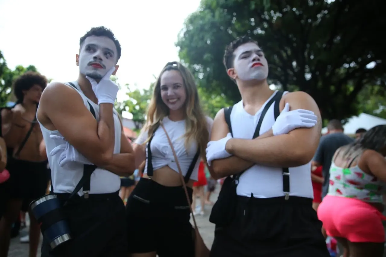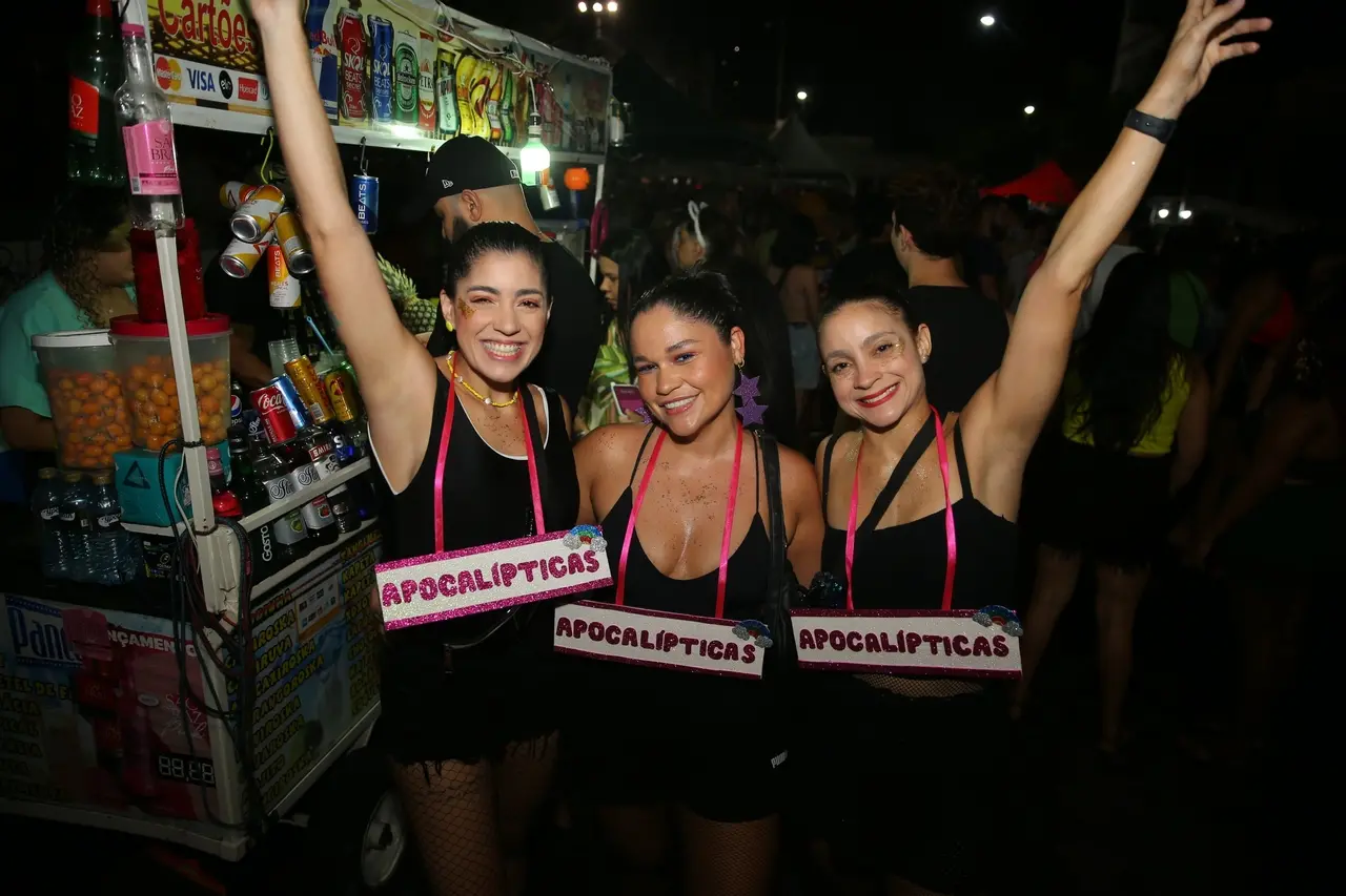 "A gente criou um grupo com esse nome e viemos a caráter. É a primeira vez que viemos fantasiadas, pensamos nisso esse ano e foi de última hora, inclusive", explicou ela aos risos enquanto curtia a folia no Mercado dos Pinhões, um dos pólos mais tradicionais de Fortaleza no período carnavalesco.