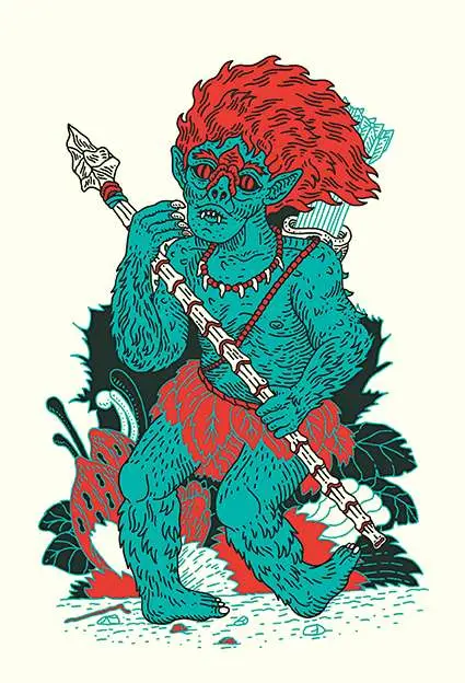 - Saci-Pererê - É descrito como um menino negro, de uma perna só, que usa um gorro e fuma cachimbo. Ele faz bagunça por onde passa e é considerado um "trickster", figura comum a muitas mitologias, que prega peças nos homens ou quebra regras de comportamento.