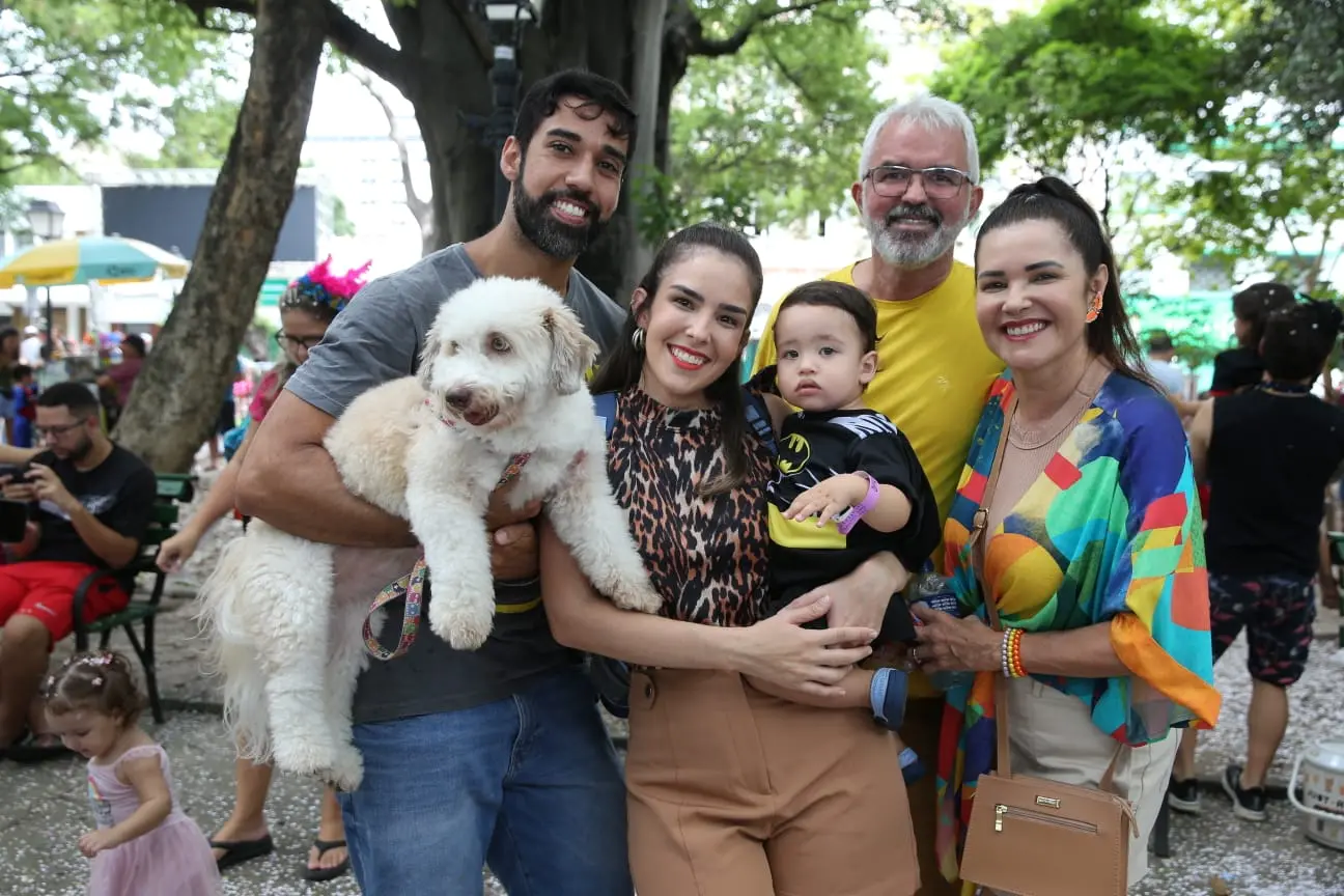 Já a publicitária Ariadne Matos viu na folga de Carnaval uma oportunidade de reunir toda a família, com o pet incluso, na folia do Centro.