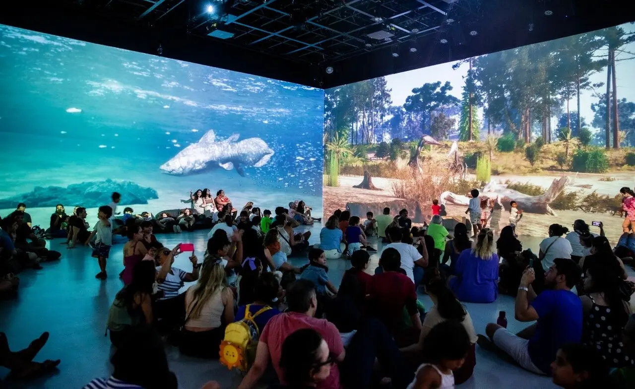 “A ideia é produzir para esse espaço [a sala imersiva do MIS] e complementar com ações adicionais. A gente tem, por exemplo, uma ação de realidade aumentada em que a pessoa aponta o celular para o QR Code e aparece um animal”, explica Adriano Oliveira, professor do curso de Sistemas e Mídias Digitais da Universidade Federal do Ceará (UFC) e diretor geral da exposição.