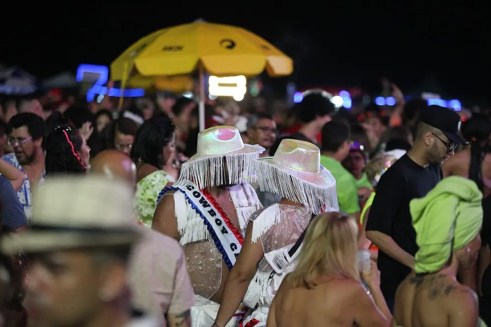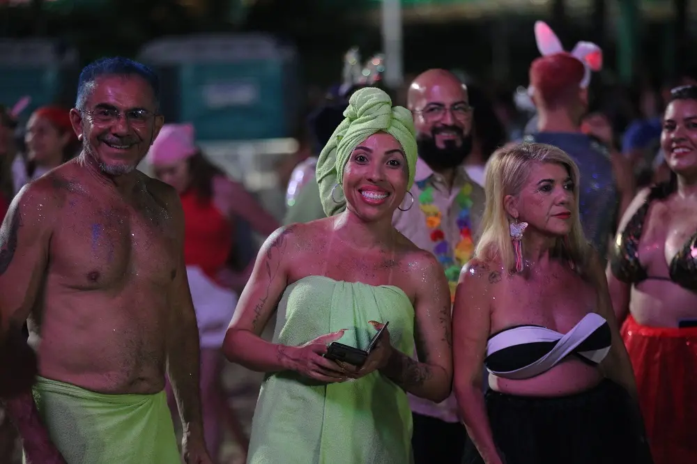 Após um dia de chuva contínua em Fortaleza, a noite do último dia de programação oficial do Carnaval da Prefeitura foi marcada pela presença de um público diverso no Aterrinho da Praia de Iracema.