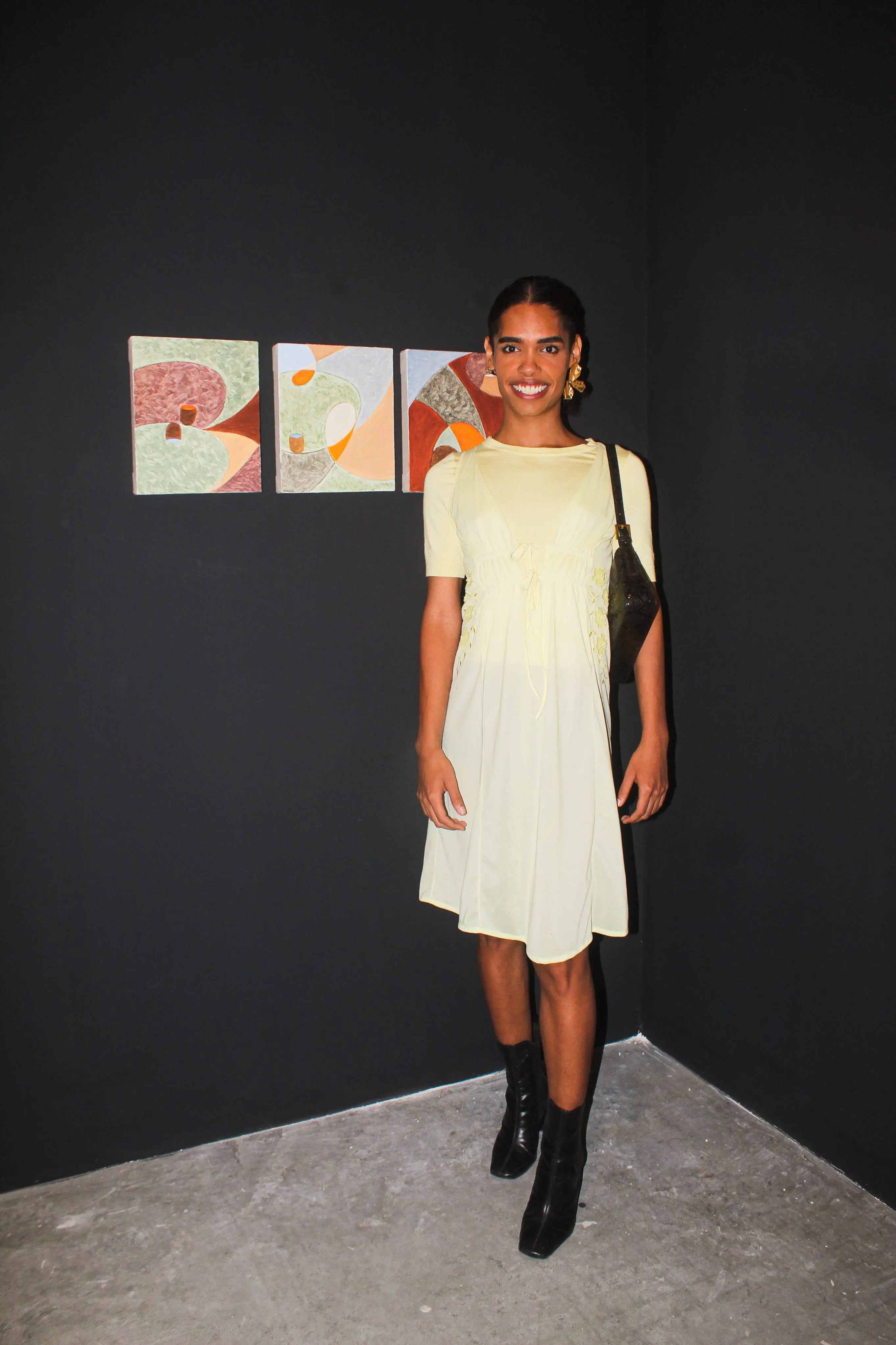 Para isso, tomou refúgio em uma substância comum a si: o escuro. Foi no escuro que se descobriu e se experimentou enquanto pessoa trans. No escuro, dançou as danças e traçou os traços que ganhariam forma em suas pinturas. Sua obra é abstrata, sim, mas nas curvas, traceja os arcos que por muita noite seus pés tracejaram nas pistas de dança.