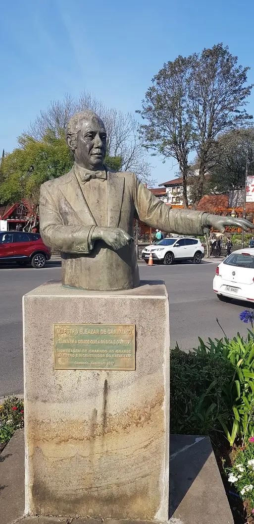O cearense Eleazar de Carvalho (1912-1996) é um nome querido da população. O busto do maestro situado próximo à Igreja Matriz São Pedro é uma das chaves para entender a força turística de Gramado. A homenagem ao iguatuense é uma forma de agradecer sua contribuição ao "Natal de Luz", um dos mais festejados e procurados eventos do Rio Grande do Sul. Uma frase atribuída ao ícone da música erudita está na placa de apresentação da estátua. Resume bem a importância de Eleazar àquele povo: "Iluminem a cidade que a música é comigo".