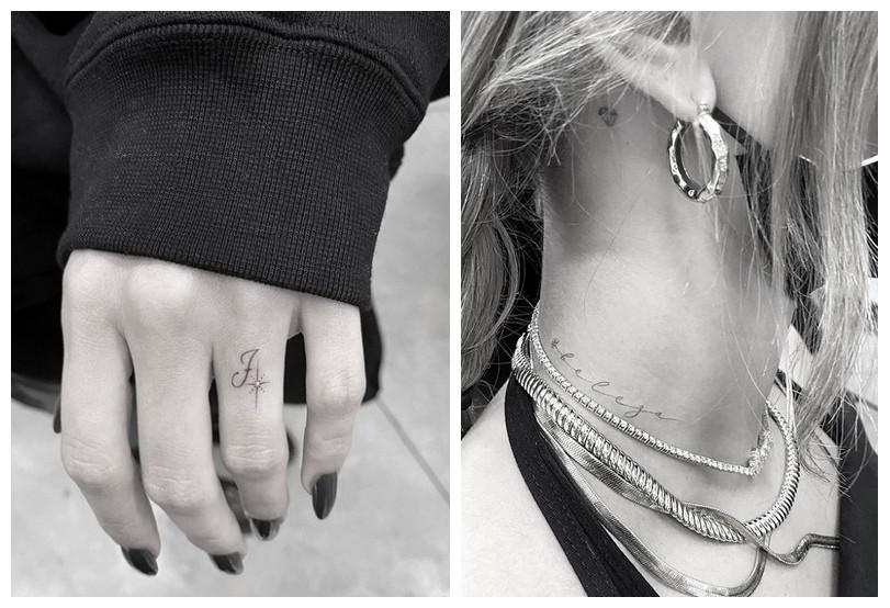 Hailey Baldwin Bieber supreendeu os fãs com duas novas tatuagens aos seus fãs. Aos 23 anos, a modelo fez a letra "J", no dedo em que usa a aliança, em homenagem ao esposo, o cantor Justin Bieber. A outra tatuagem, no pescoço, traz a palavra "beleza", em português. As recentes tattoos foram feitas por Mr. K, conhecido pelas tatuagens que faz nas celebridades. Ele divulgou as imagens no instagram.