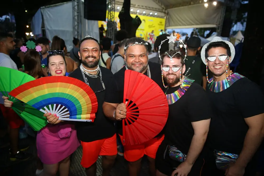 Com leques repleto das cores do arco-íris, Neilane Lino e Marcus Gomes podem até nem se conhecer, mas separaram o item idêntico para curtir o primeiro dia de festa no Mercado dos Pinhões, um dos oito pólos carnavalescos definidos em Fortaleza.