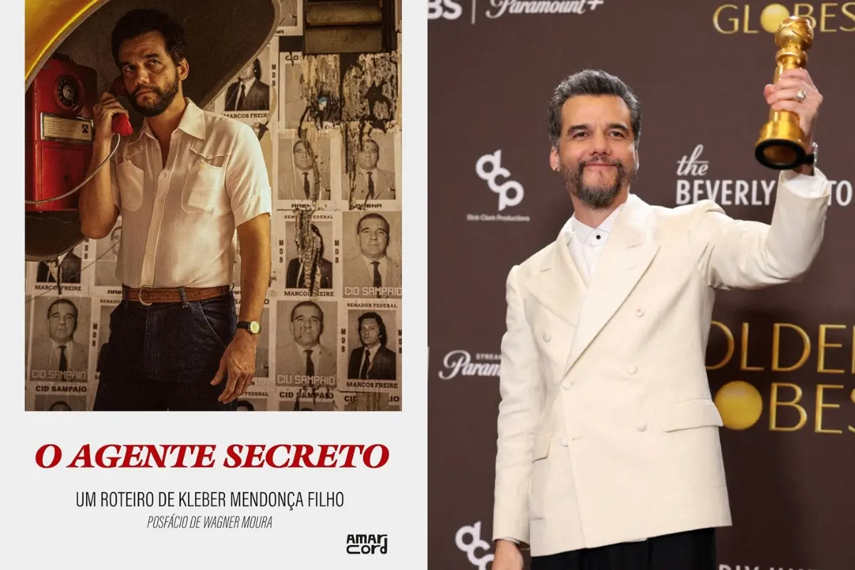 Quem vibrou com a vitória de "O Agente Secreto" na cerimônia do 83º Globo de Ouro, exibida no último domingo (11), pode gostar de saber que o roteiro do filme ganhou uma versão em livro. Publicado pela Amarcord, selo da Record, a obra possui diversos comentários do diretor Kleber Mendonça Filho, assim como um posfácio de Wagner Moura.