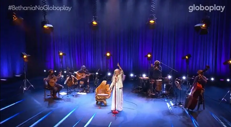 Houve, claro, espaço garantido para o repertório mais doído, quem têm em Maria Bethânia sua principal intérprete brasileira há mais de meio século. Aí entraram "Olhos nos olhos", de Chico, mais uma vez; "Sem fantasia" (dele, de novo), belíssima ao violão; e "Evidências". A canção, que explodiu na interpretação de Chitãozinho & Xororó, ganhou uma interpretação discreta. Aliás, apesar de seu apelo popular, foi momento até pálido frente a tantos de robusta intensidade vistos na live.