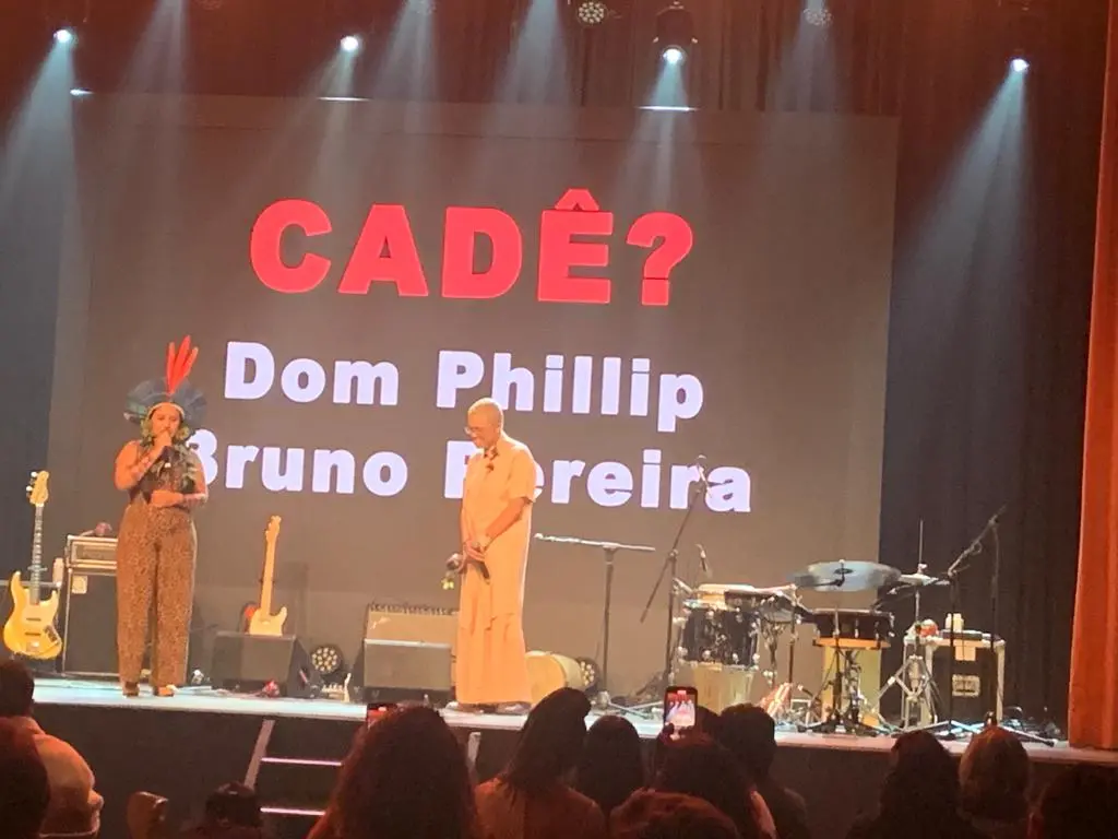 No evento de lançamento de O Som do Rio, várias imagens foram reproduzidas no telão com dados sobre assassinatos de ativistas ambientais e perguntas sobre onde estão Bruno Pereira e Dom Phillips.
