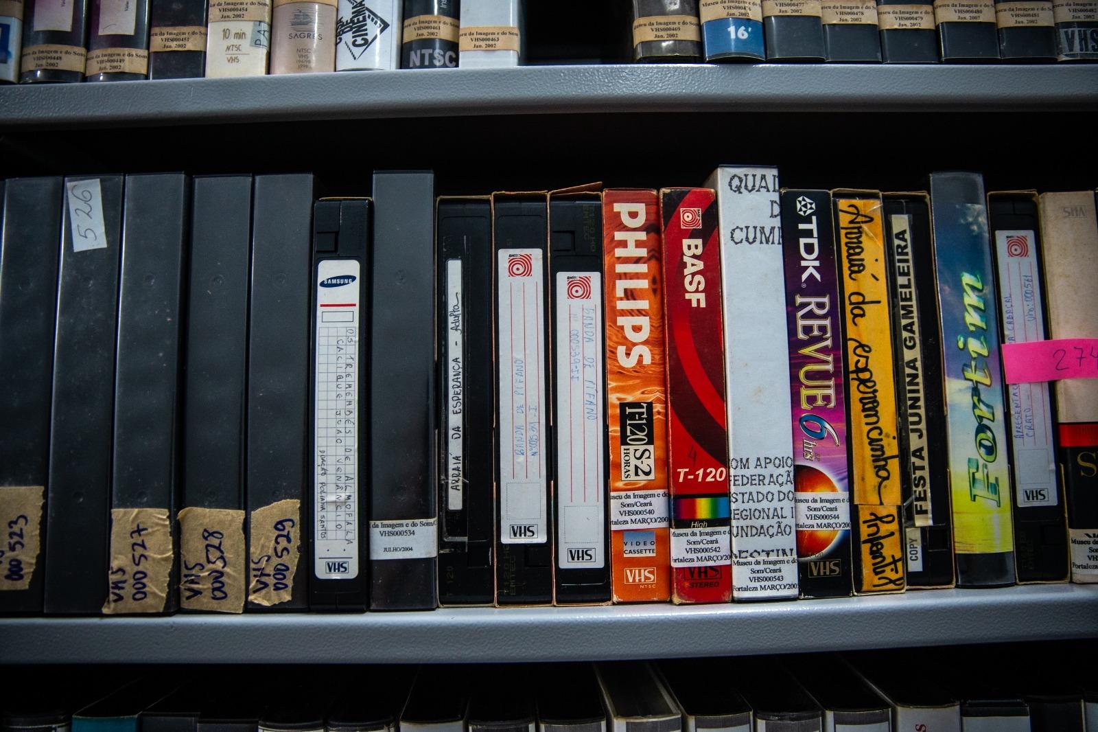 São centenas de vinis, CDs, fitas VHS, películas cinematográficas, tocadores de disco, câmeras antigas, instrumentos, quadros, xilogravuras, partituras e ainda uma ampla diversidade de suportes, linguagens e tempos que compõem os mais de 150 mil itens do acervo do Museu da Imagem e do Som do Ceará.