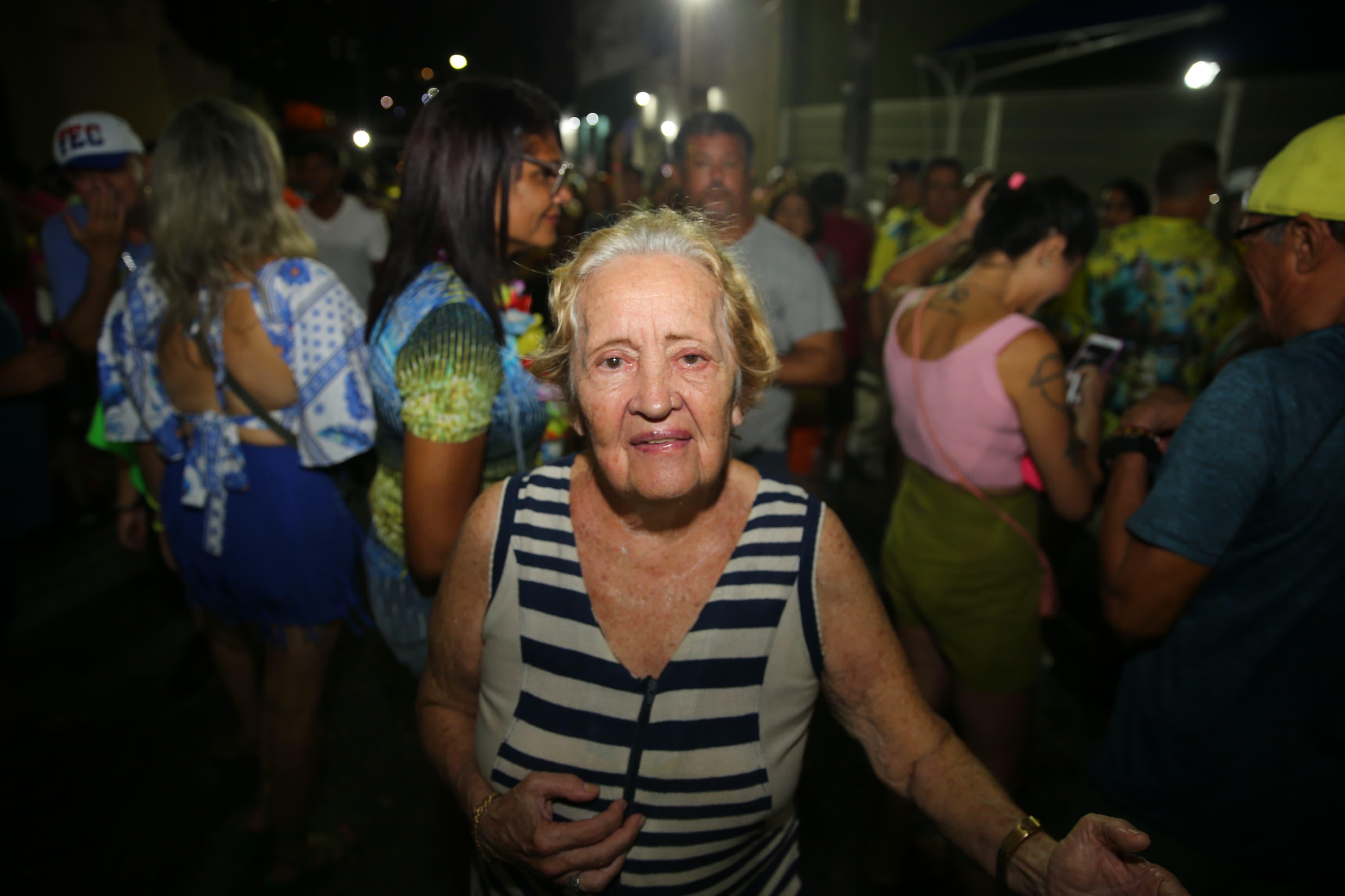 As antigas marchinhas embalam o Carnaval de uma foliã que desfruta a festa há 64 anos, em um misto de muitas alegrias e memórias. Trata-se de Valneir Ximenes Cavalcante, de 79 anos. Moradora de Fortaleza, ela escolheu o polo do Largo da Mocinha, no Meireles, para curtir o primeiro dia do ciclo carnavalesco oficial da cidade, neste sábado (10).