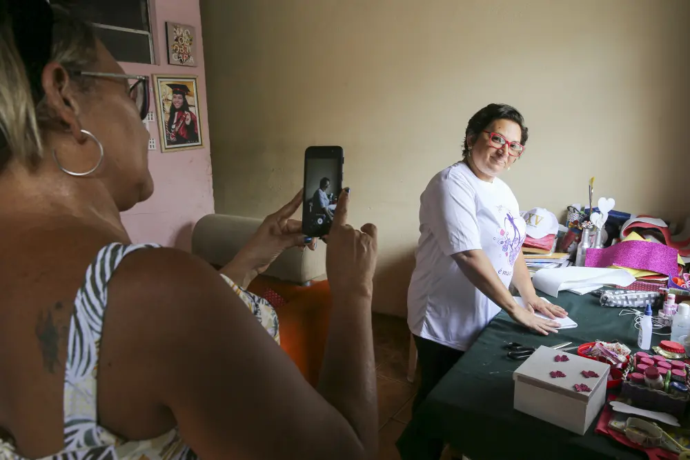 Isso ficamos sabendo com poucos segundos de conversa, na pequena sala de parede cor-de-rosa em que exibe, realizada, porta-retratos, certificados, símbolos religiosos e uma mesa, abarrotada de instrumentos manuais de trabalho. Ali, dá para sentir, o calor humano domina, embora não apenas: tudo tem cheiro de possibilidades.