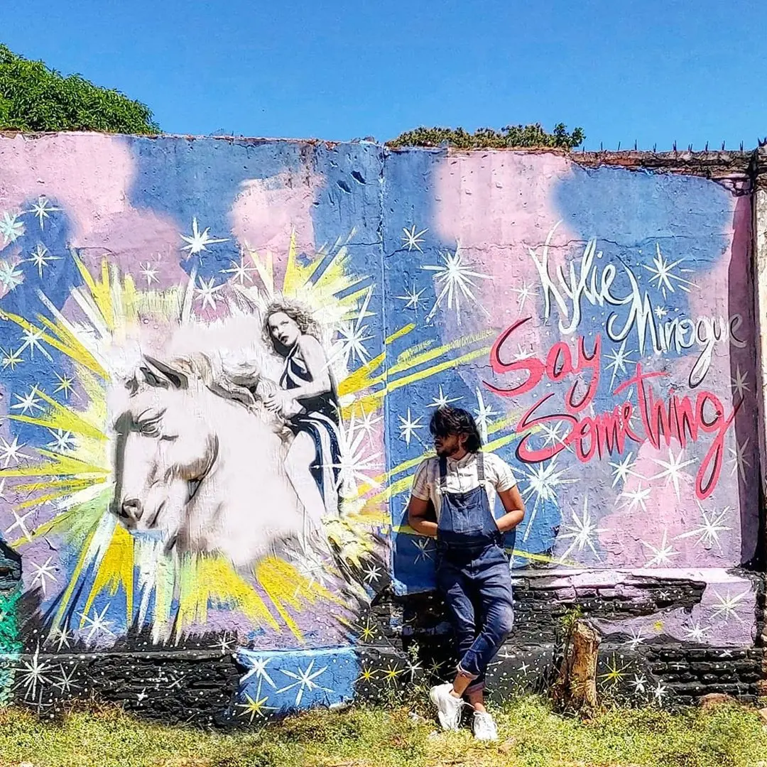 Wanderson Petrova pintou mais um mural, desta vez dedicado à música “Say Something”, de Kylie Minogue; a cantora postou a foto em seu perfil no Instagram