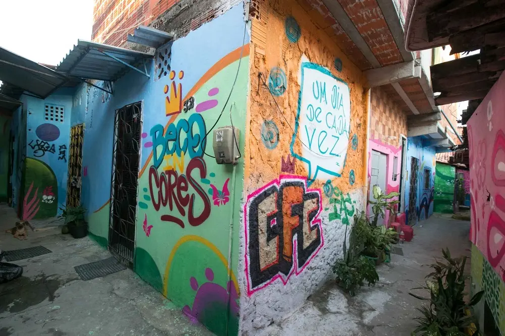 “Antes, o beco estava muito ruim, as paredes degradadas, sem reboco, muito tijolo… O projeto veio colorindo e transformou o espaço. Agora ele está mais claro, mais colorido”, festeja Doug Graffiti, detalhando ainda que a comunidade foi acionada para participar da ação por meio de cartazes e divulgação pela internet.