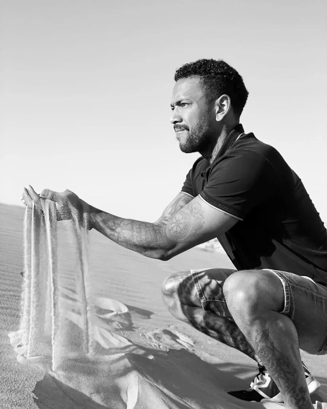 Acompanhando uma foto em preto-e-branco, com areia entre os dedos, ele escreveu: