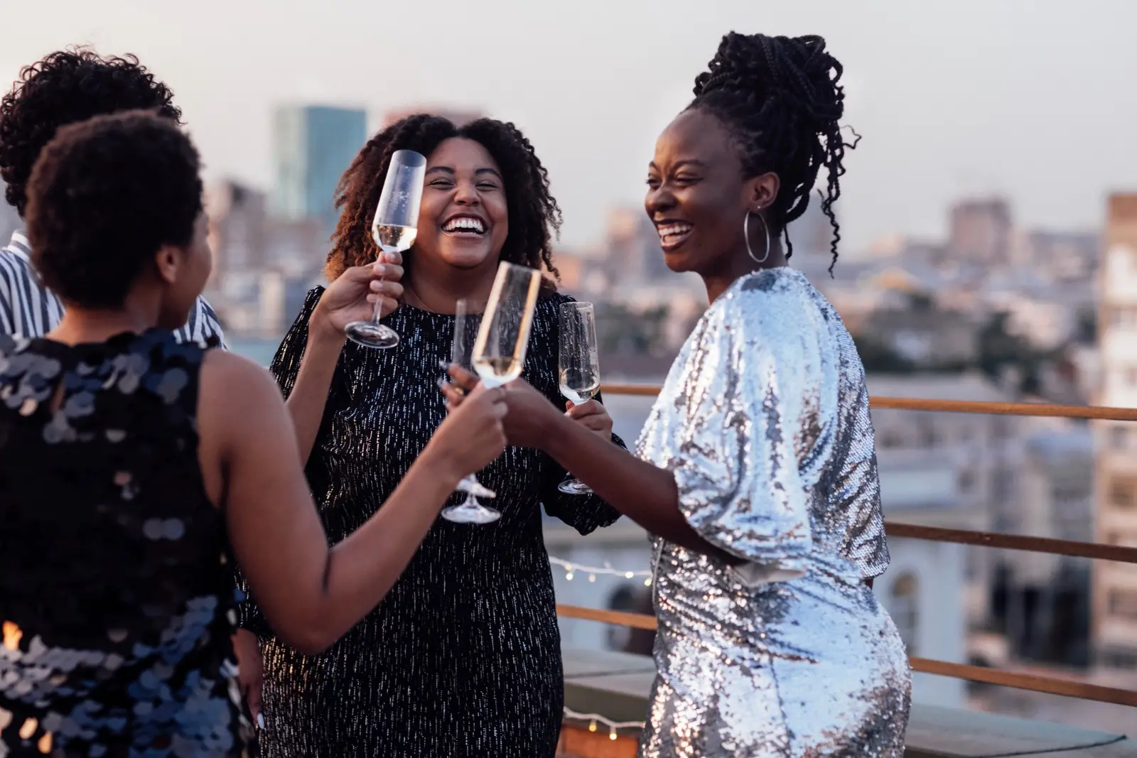 Festa no rooftop com vista para o mar