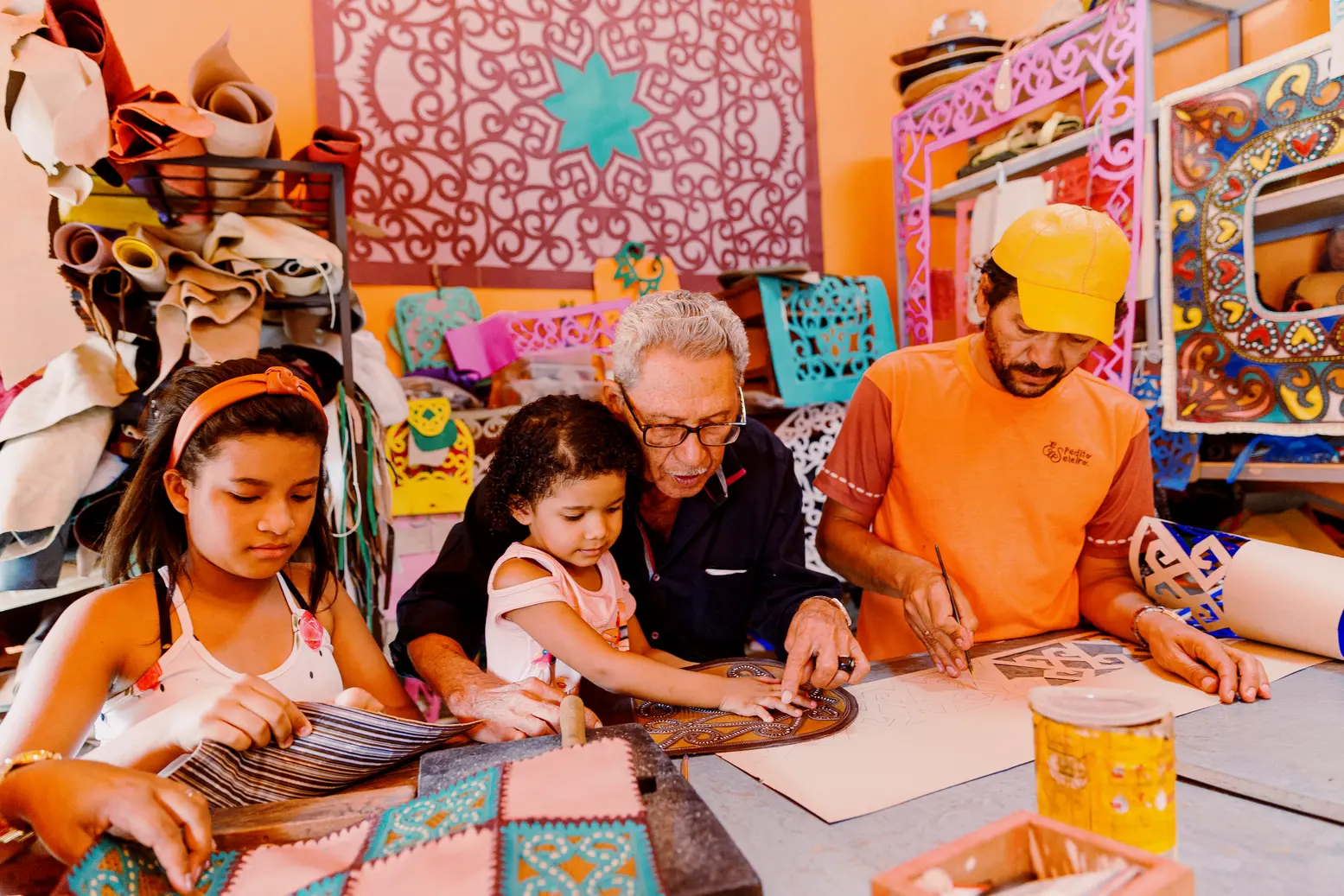 O processo, como fica perceptível, é gradual na família de seleiros, e as filhas de Wellington, Rayssa, 13 anos, e Mayssa, 4, são provas vivas disso. "A gente começa aos poucos, nos pontinhos, que é mais fácil, depois pega na lâmina, corta o couro, e aí vai desenvolvendo, criando, aprendendo mais, pegando a prática", destaca o pai.