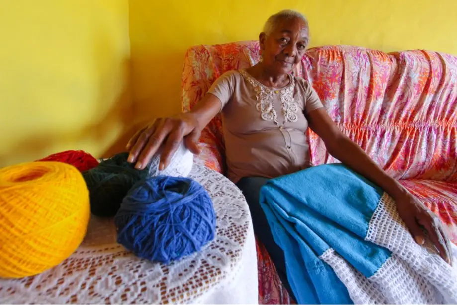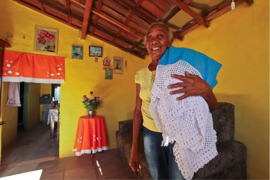 "Carregava água na cabeça, emprestada dos vizinhos, para construir o meu lar", conta, antes de levantar para me mostrar toda a instalação. Da sala, vamos para o quarto de visitas, onde exibe orgulhosa uma coleção de redes. "Nem sei ler nem escrever, o dom que Deus me deu foi esse e eu amo meu trabalho, se não eu nem fazia", destaca.