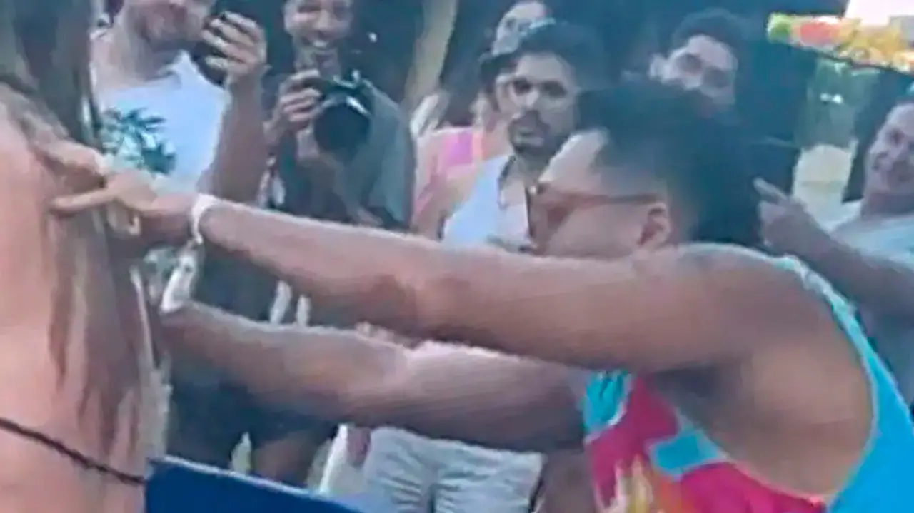 Em vídeos que circulam pela internet, ele desata os nós de roupas de banho de, pelo menos, três participantes e ainda puxa as peças na tentativa de deixá-las despidas. “Isso é assédio, ele não fez isso só comigo, mas com outras mulheres. Isso é uma falta de respeito”, declarou Nicole em suas redes sociais.