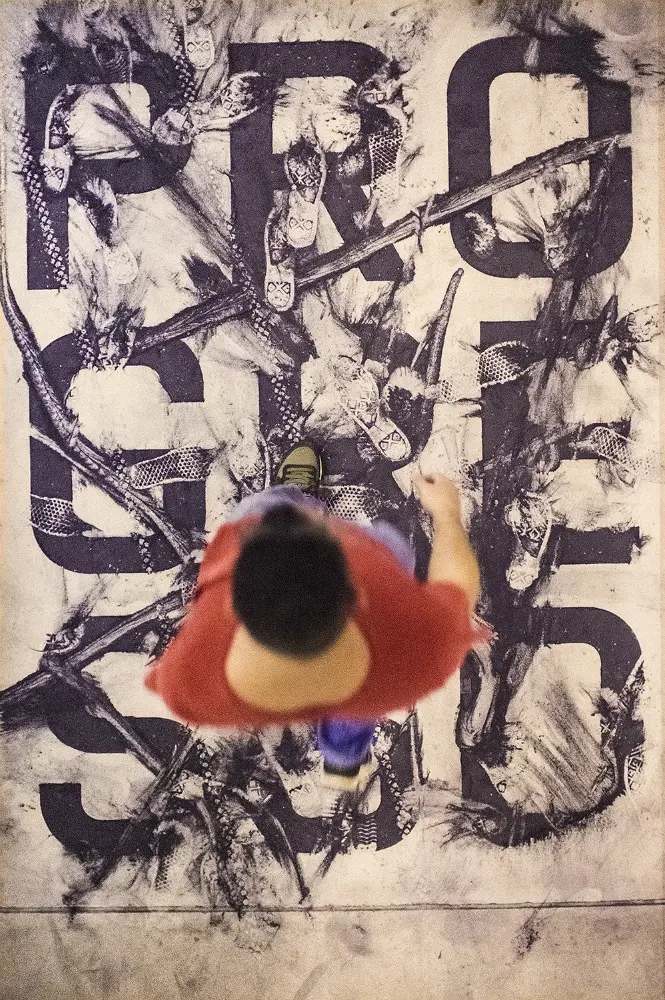 “Não danifique os sinais”, no primeiro andar do prédio, igualmente reúne os detalhes mencionados, contudo trata especificamente dos momentos de conflito em que vivemos desde sempre. Traz, assim, fotografias de acontecimentos de agora e outrora – guerras, tragédias, manifestações, até culminar no cangaço.
