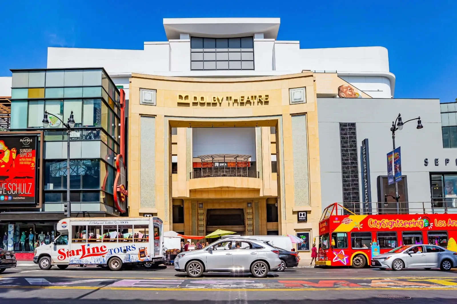 Localizado dentro do complexo Ovation Hollywood, o Dolby Theatre integra uma área que reúne lojas, restaurantes, casas noturnas, um cinema moderno, além de estar ao lado do tradicional TCL Chinese Theatre e do Loews Hollywood Hotel.