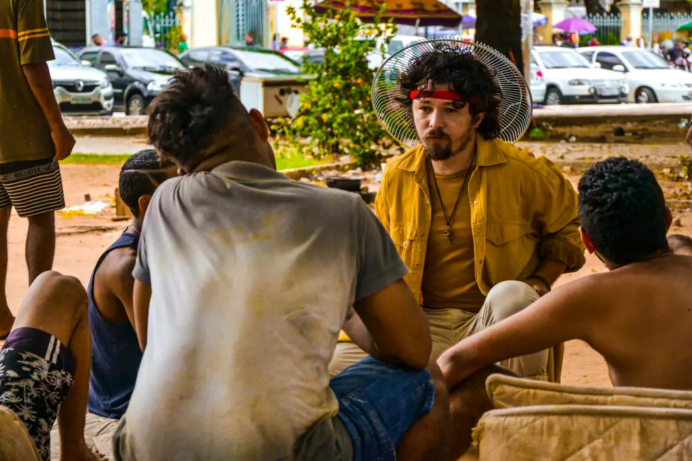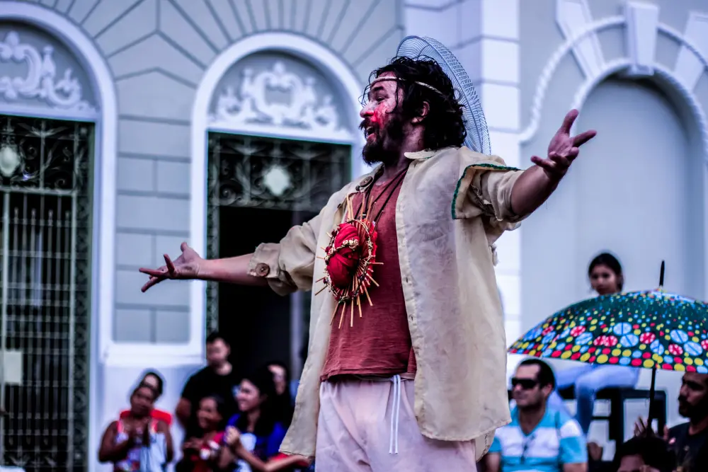 São nuances expressas pela fala segura do ator Thyago Câmara, que interpreta Jesus no espetáculo "Às Margens", do Grupo Avia de Teatro. Desde o ano passado, a peça, envolvendo cerca de dez profissionais das Artes Cênicas, é voltada especificamente para pessoas em situação de rua do Centro da cidade. Neste ano, será vivenciada na Praça do Ferreira e na calçada do Theatro José de Alencar, respectivamente às 14h e 16h desta quinta-feira (18), imergindo em aspectos caros ao público-alvo principal.