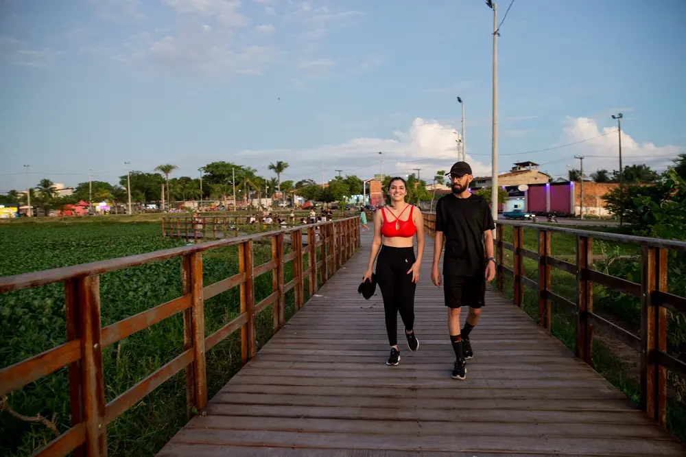São 200 mil m² de área urbanizada. A lagoa, claro, é a grande protagonista – inspiração para fotos ao fim de tarde e respiros tranquilos. Ao redor dela, calçadão para caminhadas, praças arborizadas, área de esporte, píeres, mirante e área de lazer completam o cenário. O público aprova e usufrui. Junto à namorada e aos amigos, Mota frequentemente passeia ali.