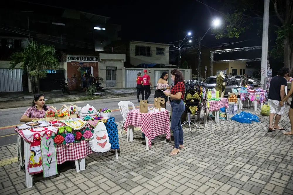 Artesanato também encontra espaço por lá. Outrora integrante de um projeto de mulheres empreendedoras, Adriana Sousa vende canetas decoradas com flores em E.V.A., arranjos florais, panos de prato em crochê, tapeçaria e descansos de prato. A casa dela fica bem próximo, o que oportuniza para que tudo fique ainda melhor.