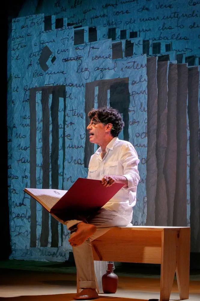 Sendo assim, uma manta sonora encorpada – captando desde o som dos pássaros ao ruído de crianças – e fartura de projeções dão conta de alargar aspectos relevantes do trajeto do artista, beneficiadas pela intimidade de ambos os diretores com o texto. Enquanto Rafael Ponzi colabora sobretudo com a parte técnica, Juliana Betti foi a primeira a ouvir o roteiro.
