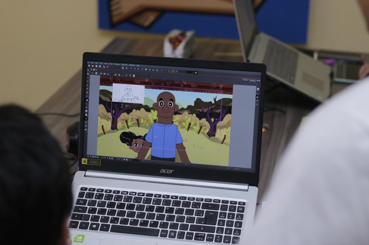 “Há dois núcleos de produção, um em Meruoca e outro em Fortaleza, de onde os profissionais trabalham. A integração é feita de forma remota, por meio de plataformas como o Kitsu, que facilita os feedbacks das etapas técnicas”.
