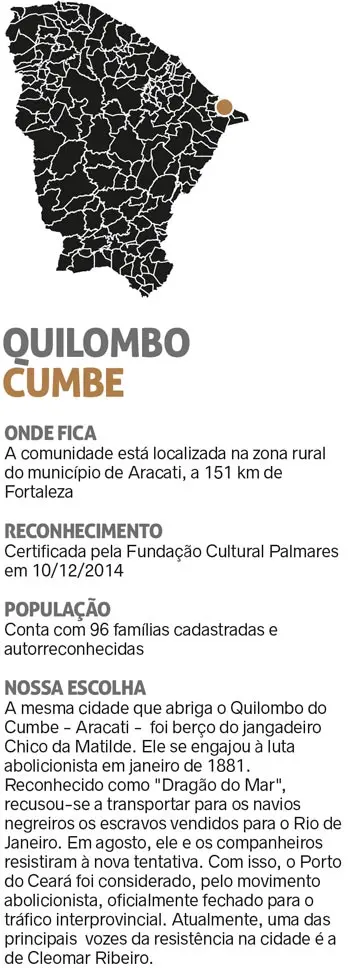 Seu feijão não vem das prateleiras, tampouco os legumes e as frutas. E essa relação com a terra se expandiu ainda mais desde que despertou para sua identidade quilombola. Lembra que, ainda na infância, visitava a maior duna do Cumbe, em Aracati, e ouvia dos mais velhos que ali havia sido refúgio dos negros e que eles faziam vigília naquele morro. “Lá, avistavam o mar, todo o rio, todo o território. E eu cresci com aquilo”, pontua hoje, aos 44 anos.