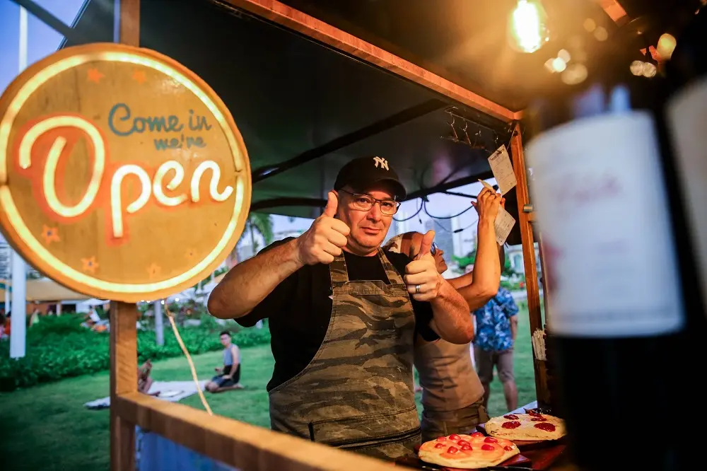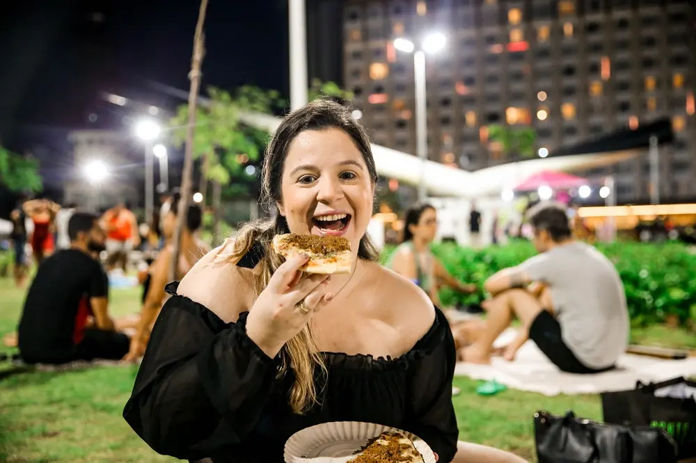 “Nunca pensei que poderia haver essa combinação de gramado, pizza e beira-mar. Inclusive, moro aqui perto e estava comentando o quanto eles foram criativos. É sensacional. A gente realmente aproveita tudo: come, se diverte, tem contato com a natureza, com a cultura, e é bom para todas as idades”.