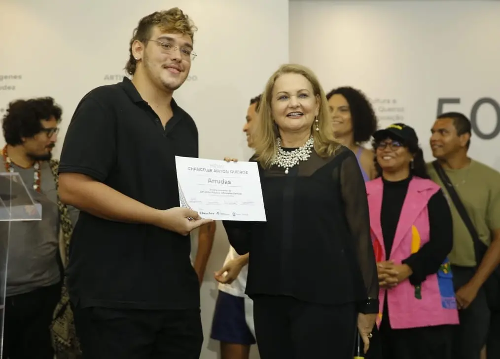 O artista Arrudas foi agraciado com o Prêmio Chanceler Airton Queiroz, na abertura da 22ª Unifor Plástica, realizada na noite de quinta-feira (17). O realizador será contemplado com passagens aéreas e ajuda de custo de mil euros para vivenciar a Bienal de Veneza 2024.