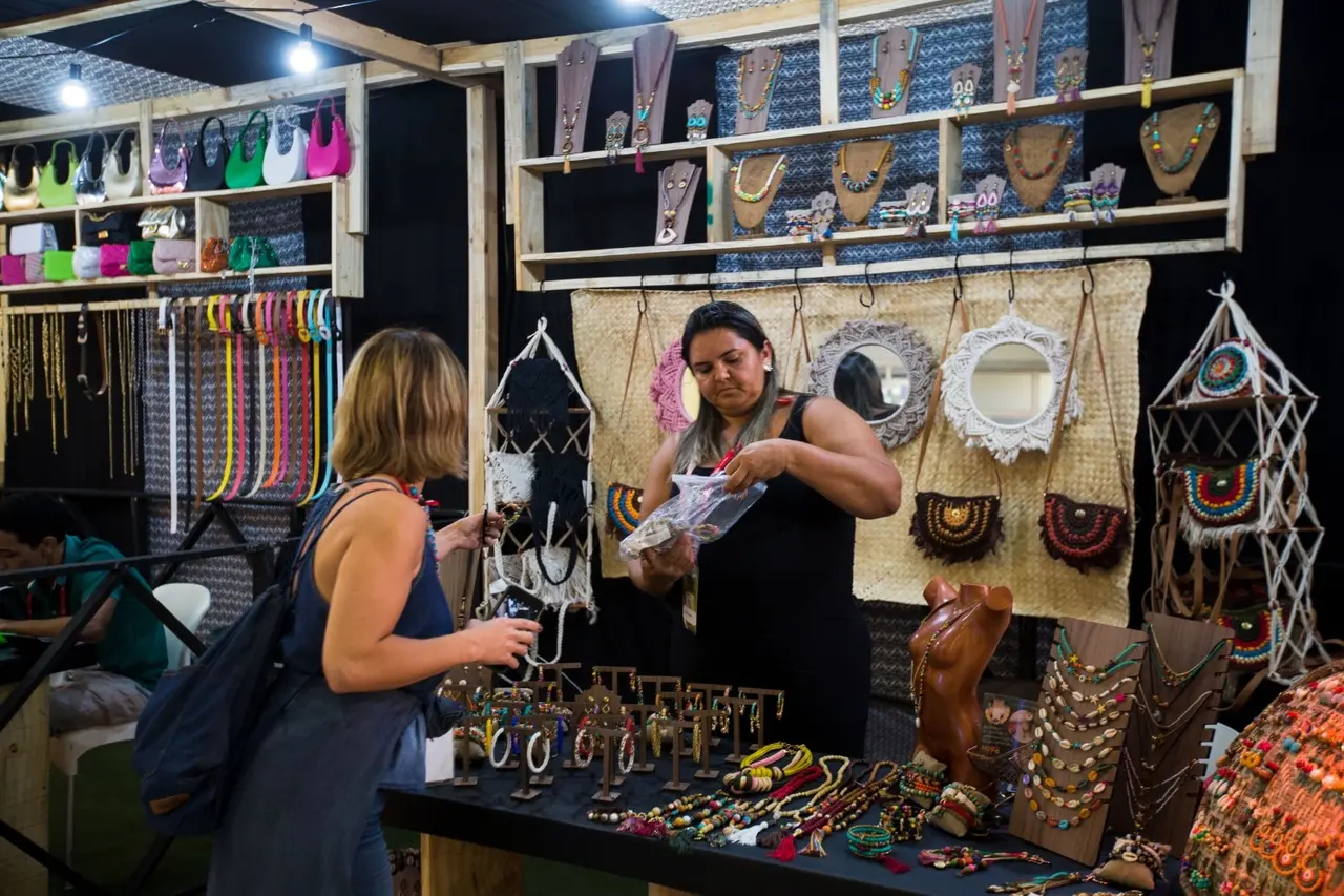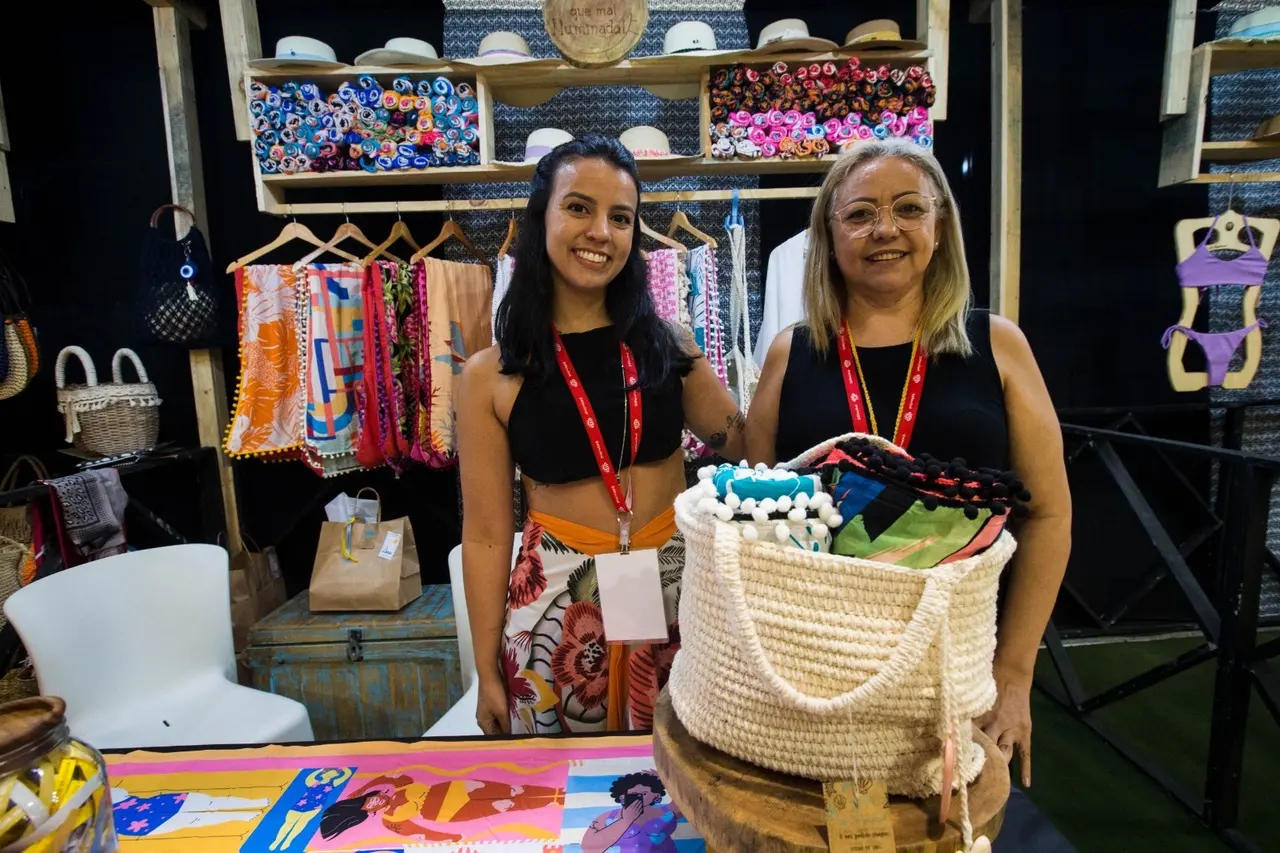 Assim como nas outras edições, o Mercado Criativo DFB trouxe oportunidade para que micro e pequenos empreendedores exibam suas marcas e vendam os produtos. Um dos negócios presentes é a loja de moda praia Cor Praiana, pela primeira vez no evento, comandada por Mary e Yasmin Carvalho, mãe e filha.