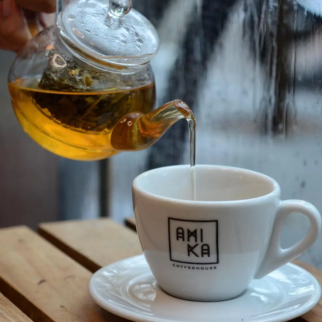 O Amika Coffeehouse apresenta um leque riquíssimo de chás e infusões. O Tam Duong Jasmine, por exemplo, é chá verde do Vietnã perfumado com flores de jasmim. Tem ainda o Gregory’s (maçã, hibisco, rosa mosqueta, cassis, amora e groselha), Um por Todos (hortelã, folhas de amora, erva-cidreira, erva-doce, camomila, calêndula e flores de centáurea) e o Frutas dos Bosques (hibisco, sabugueiro, passas, mirtilos e groselhas), entre outros.
