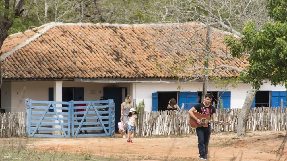A percepção brota desde que a porteira azul da fazenda é avistada ao longe. Detalhe importante: nenhuma das outras moradias do distrito de Daniel de Queiroz possui aquela marca cromática. A informação é chancelada por Daniel Victor, guia da fazenda, responsável por apresentar os detalhes da habitação durante visitas empreendidas ao imóvel.